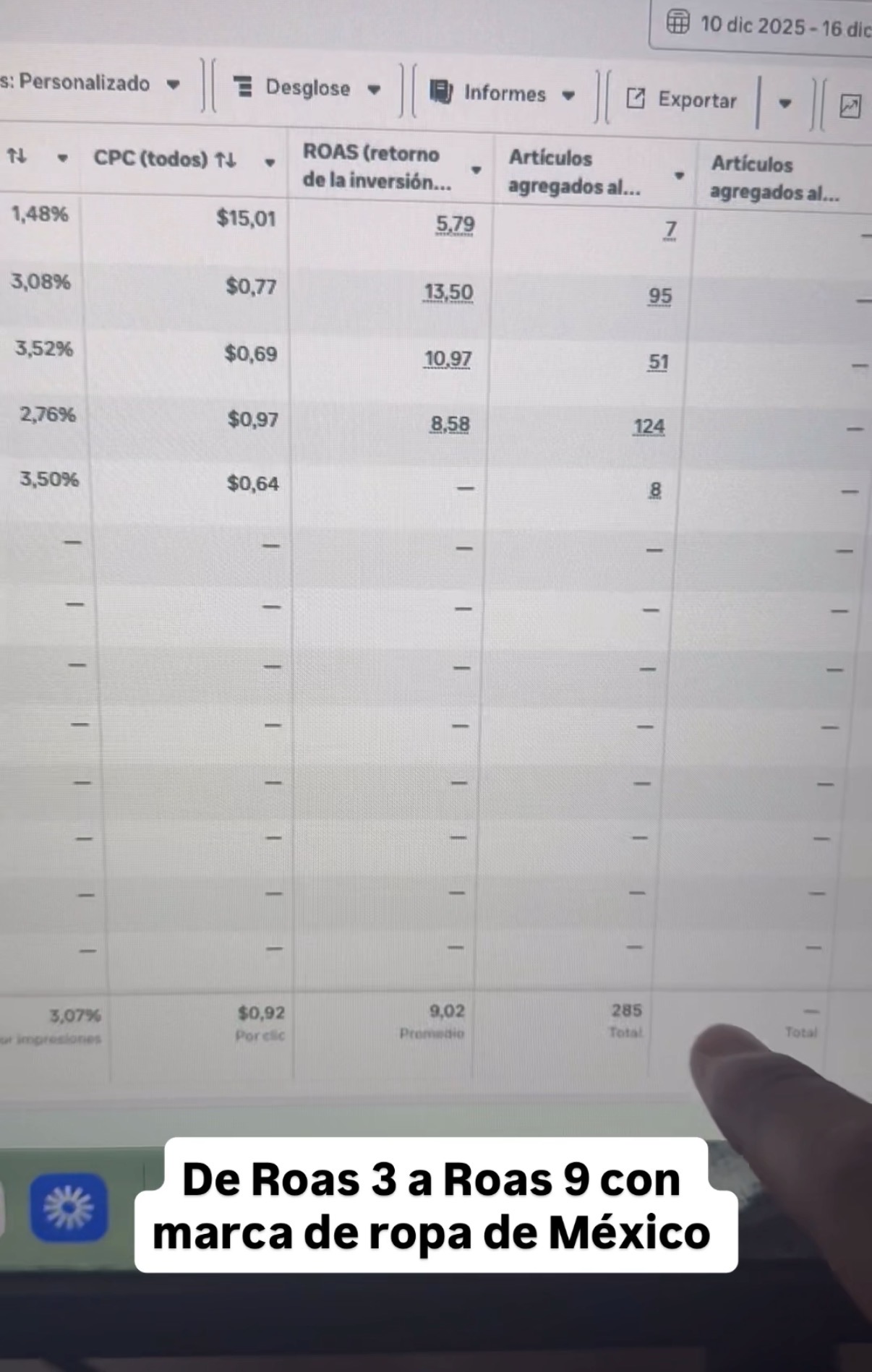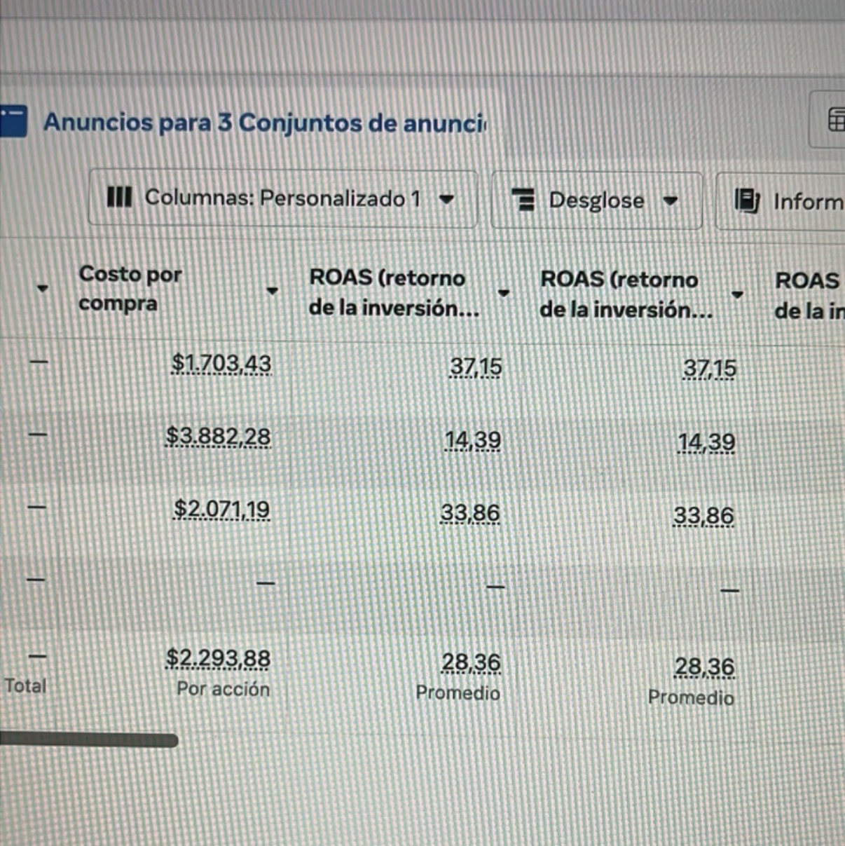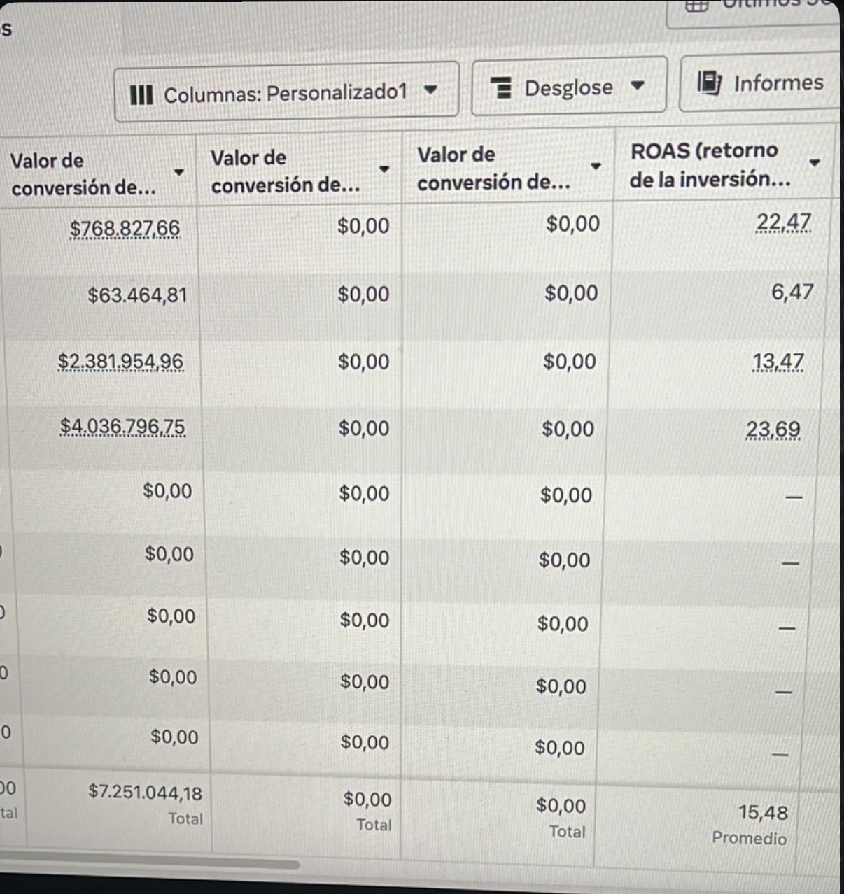 Roas 15 de promedio