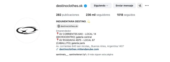 Marca de ropa Argentina emergente con un local y venta online fuerte.